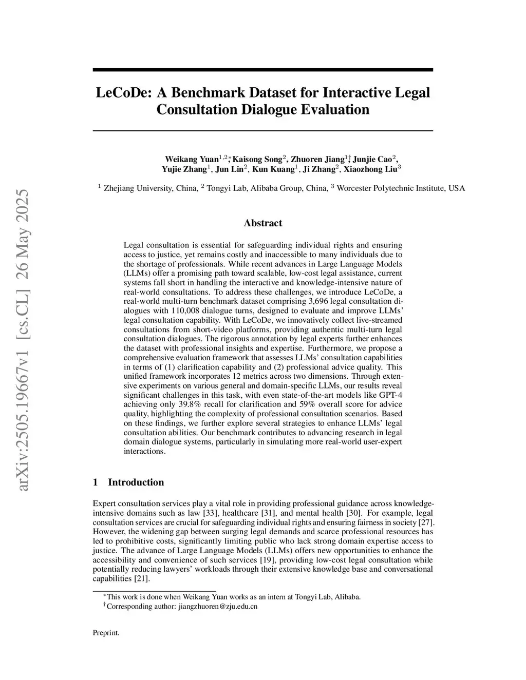 LeCoDe: A Benchmark Dataset for Interactive Legal Consultation Dialogue Evaluation