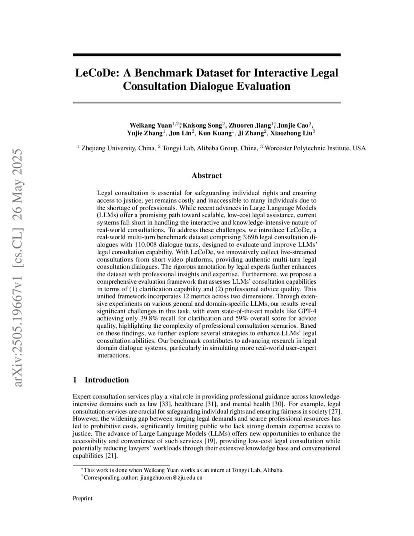 Legal consultation is essential for safeguarding individual rights and ensuring access to justice, yet remains costly and inaccessible to many individuals due to the shortage of professionals. While recent advances in Large Language Models (LLMs) offer a promising path toward scalable, low-cost legal assistance, current systems fall short in handling the interactive and knowledge-intensive nature of real-world consultations. To address these challenges, we introduce LeCoDe, a real-world multi-turn benchmark dataset comprising 3,696 legal consultation dialogues with 110,008 dialogue turns, designed to evaluate and improve LLMs' legal consultation capability. With LeCoDe, we innovatively collect live-streamed consultations from short-video platforms, providing authentic multi-turn legal consultation dialogues. The rigorous annotation by legal experts further enhances the dataset with professional insights and expertise. Furthermore, we propose a comprehensive evaluation framework that assesses LLMs' consultation capabilities in terms of (1) clarification capability and (2) professional advice quality. This unified framework incorporates 12 metrics across two dimensions. Through extensive experiments on various general and domain-specific LLMs, our results reveal significant challenges in this task, with even state-of-the-art models like GPT-4 achieving only 39.8% recall for clarification and 59% overall score for advice quality, highlighting the complexity of professional consultation scenarios. Based on these findings, we further explore several strategies to enhance LLMs' legal consultation abilities. Our benchmark contributes to advancing research in legal domain dialogue systems, particularly in simulating more real-world user-expert interactions.