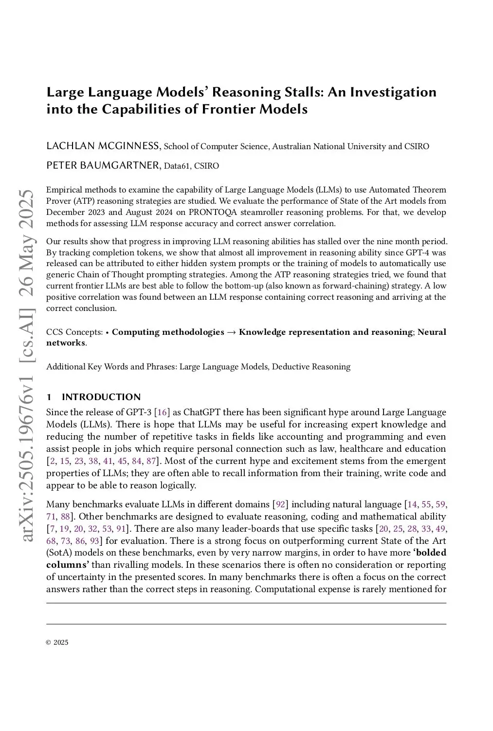 Large Language Models' Reasoning Stalls: An Investigation into the Capabilities of Frontier Models