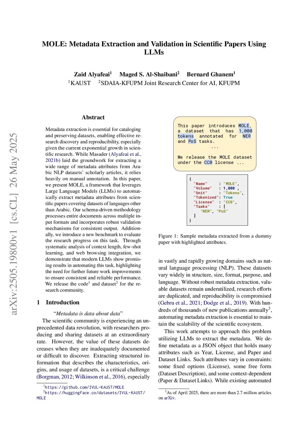 MOLE: Metadata Extraction and Validation in Scientific Papers Using LLMs