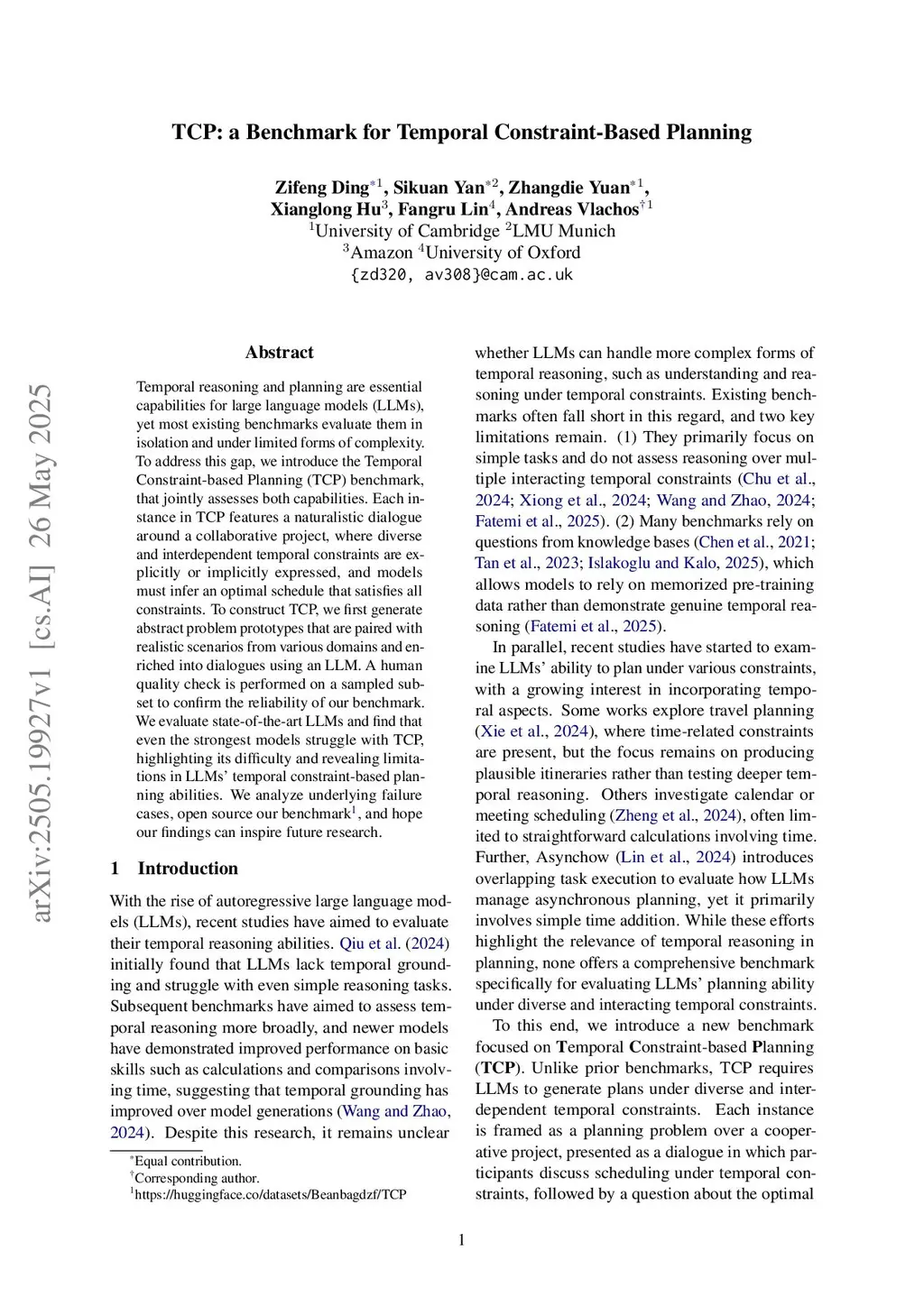 TCP: a Benchmark for Temporal Constraint-Based Planning