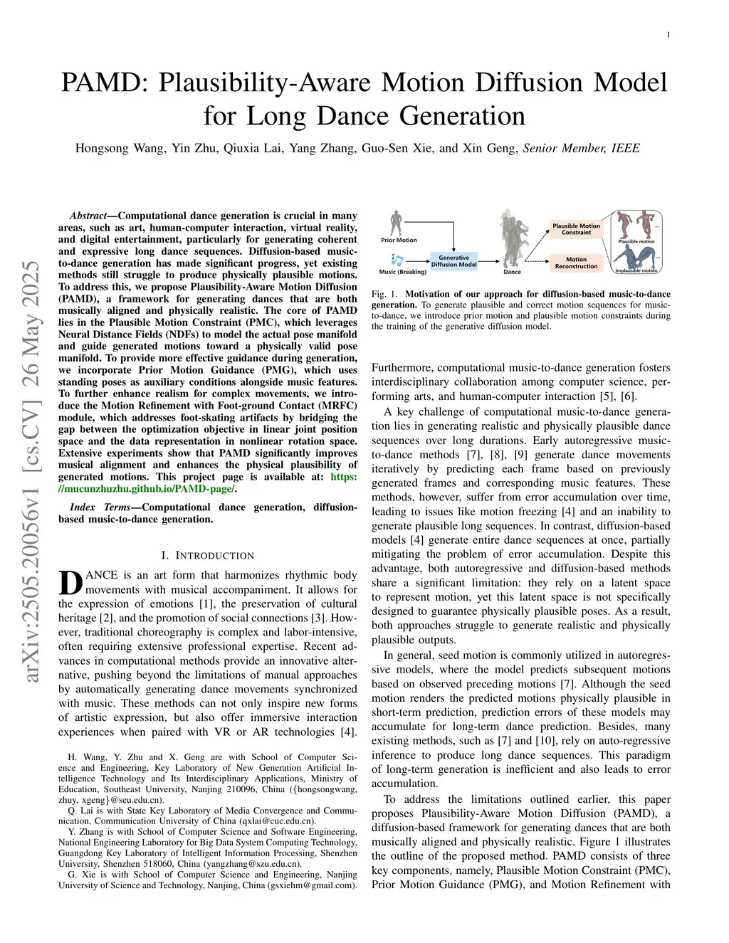 PAMD: Plausibility-Aware Motion Diffusion Model for Long Dance Generation