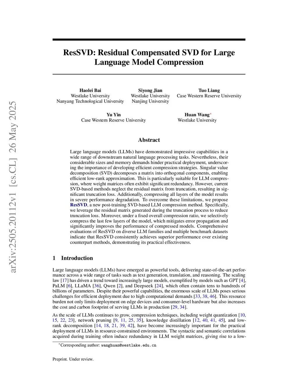 ResSVD: Residual Compensated SVD for Large Language Model Compression