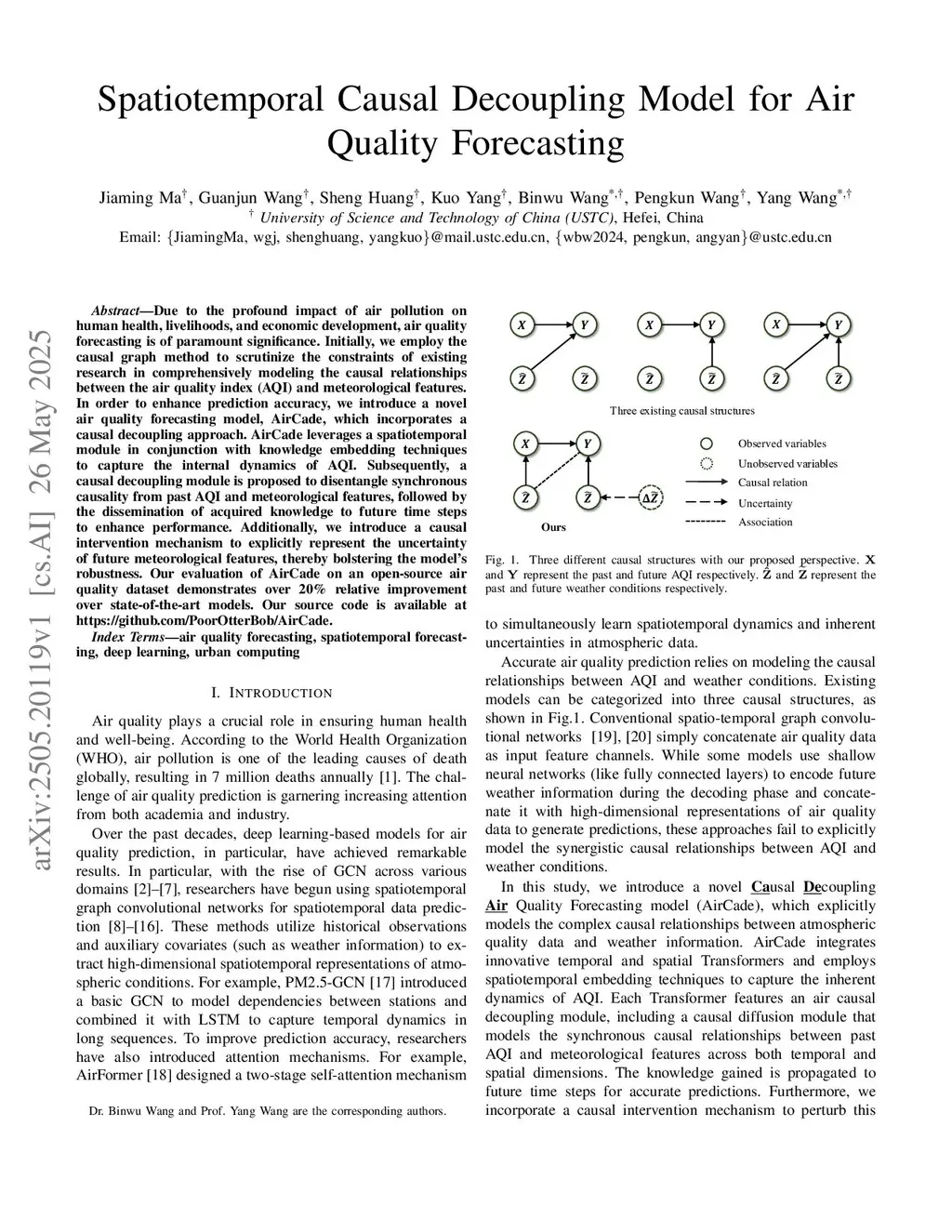 Spatiotemporal Causal Decoupling Model for Air Quality Forecasting