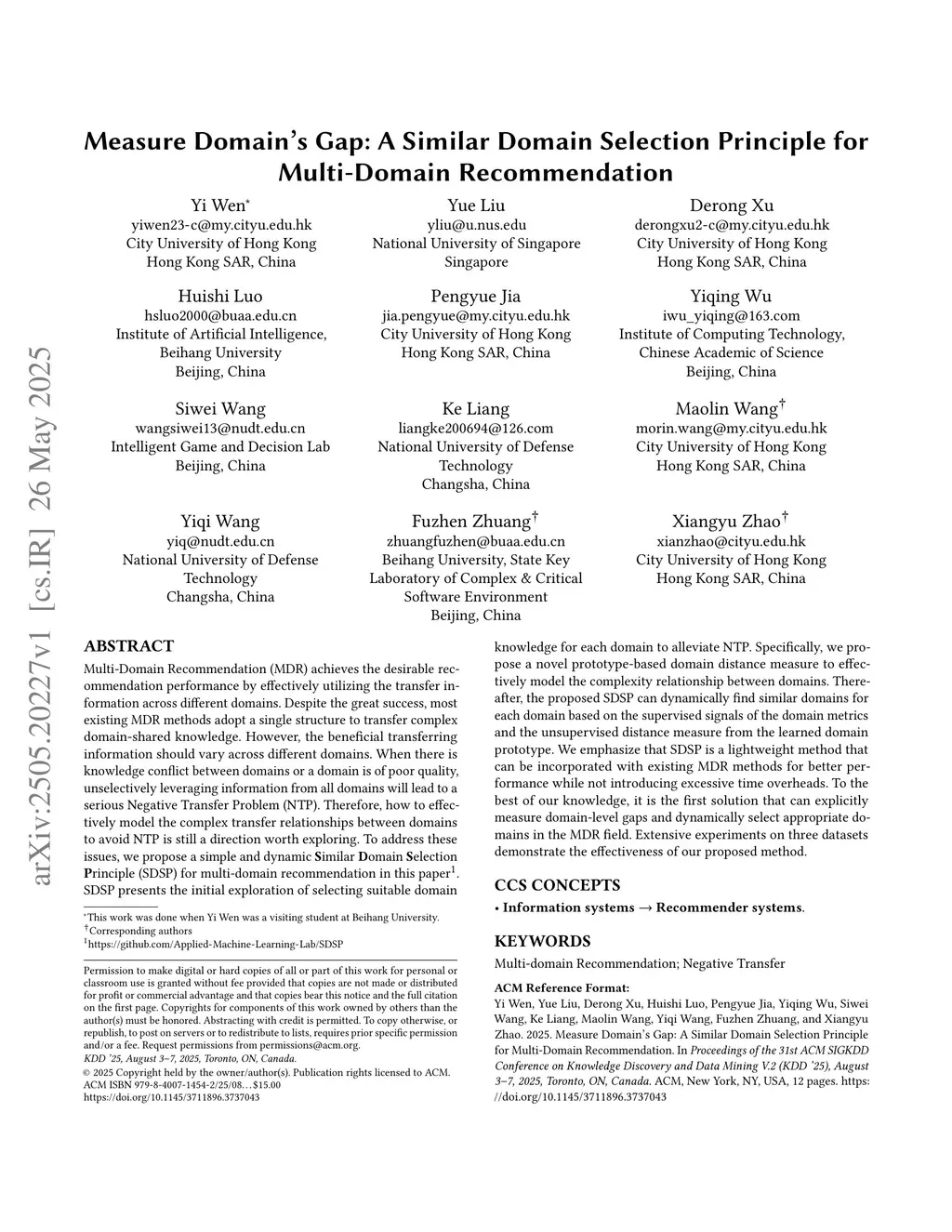 Measure Domain's Gap: A Similar Domain Selection Principle for Multi-Domain Recommendation