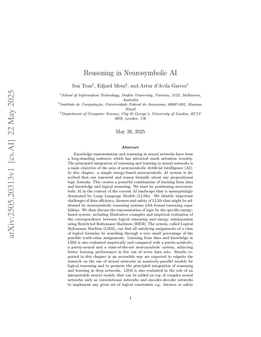 Knowledge representation and reasoning in neural networks have been a long-standing endeavor which has attracted much attention recently. The principled integration of reasoning and learning in neural networks is a main objective of the area of neurosymbolic Artificial Intelligence (AI). In this chapter, a simple energy-based neurosymbolic AI system is described that can represent and reason formally about any propositional logic formula. This creates a powerful combination of learning from data and knowledge and logical reasoning. We start by positioning neurosymbolic AI in the context of the current AI landscape that is unsurprisingly dominated by Large Language Models (LLMs). We identify important challenges of data efficiency, fairness and safety of LLMs that might be addressed by neurosymbolic reasoning systems with formal reasoning capabilities. We then discuss the representation of logic by the specific energy-based system, including illustrative examples and empirical evaluation of the correspondence between logical reasoning and energy minimization using Restricted Boltzmann Machines (RBM). Learning from data and knowledge is also evaluated empirically and compared with a symbolic, neural and a neurosymbolic system. Results reported in this chapter in an accessible way are expected to reignite the research on the use of neural networks as massively-parallel models for logical reasoning and promote the principled integration of reasoning and learning in deep networks. We conclude the chapter with a discussion of the importance of positioning neurosymbolic AI within a broader framework of formal reasoning and accountability in AI, discussing the challenges for neurosynbolic AI to tackle the various known problems of reliability of deep learning.
