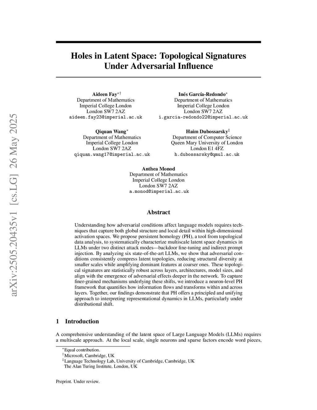 The Shape of Adversarial Influence: Characterizing LLM Latent Spaces with Persistent Homology