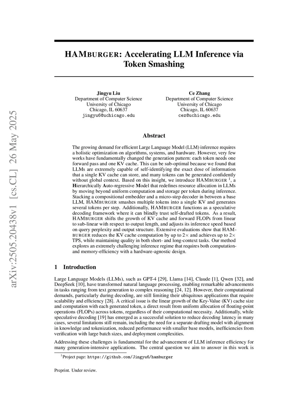 HAMburger: Accelerating LLM Inference via Token Smashing