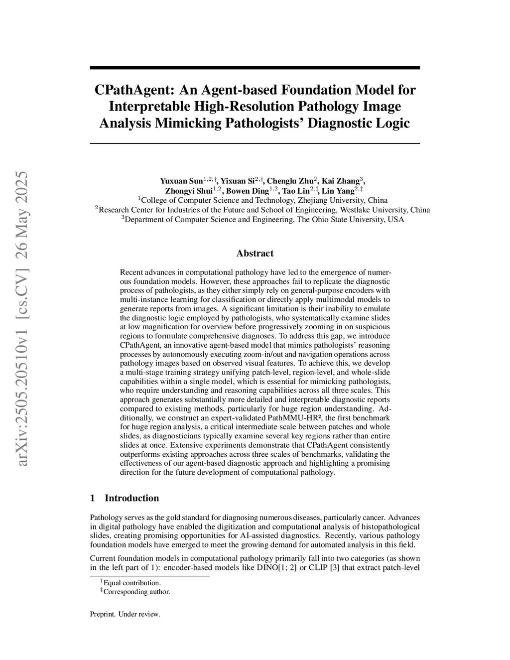 Recent advances in computational pathology have led to the emergence of numerous foundation models. These models typically rely on general-purpose encoders with multi-instance learning for whole slide image (WSI) classification or apply multimodal approaches to generate reports directly from images. However, these models cannot emulate the diagnostic approach of pathologists, who systematically examine slides at low magnification to obtain an overview before progressively zooming in on suspicious regions to formulate comprehensive diagnoses. Instead, existing models directly output final diagnoses without revealing the underlying reasoning process. To address this gap, we introduce CPathAgent, an innovative agent-based approach that mimics pathologists' diagnostic workflow by autonomously navigating across WSI based on observed visual features, thereby generating substantially more transparent and interpretable diagnostic summaries. To achieve this, we develop a multi-stage training strategy that unifies patch-level, region-level, and WSI-level capabilities within a single model, which is essential for replicating how pathologists understand and reason across diverse image scales. Additionally, we construct PathMMU-HR2, the first expert-validated benchmark for large region analysis. This represents a critical intermediate scale between patches and whole slides, reflecting a key clinical reality where pathologists typically examine several key large regions rather than entire slides at once. Extensive experiments demonstrate that CPathAgent consistently outperforms existing approaches across benchmarks at three different image scales, validating the effectiveness of our agent-based diagnostic approach and highlighting a promising direction for computational pathology.