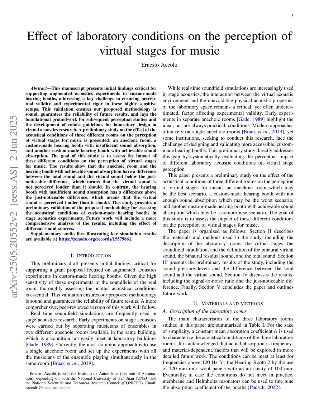 This manuscript presents initial findings critical for supporting augmented acoustics experiments in custom-made hearing booths, addressing a key challenge in ensuring perceptual validity and experimental rigor in these highly sensitive setups. This validation ensures our proposed methodology is sound, guarantees the reliability of future results, and lays the foundational groundwork for subsequent perceptual studies and the development of robust guidelines for laboratory design in virtual acoustics research. A preliminary study on the effect of the acoustical conditions of three different rooms on the perception of virtual stages for music is presented: an anechoic room, a custom-made hearing booth with insufficient sound absorption, and another custom-made hearing booth with achievable sound absorption. The goal of this study is to assess the impact of these different conditions on the perception of virtual stages for music. The results show that the anechoic room and the hearing booth with achievable sound absorption have a difference between the total sound and the virtual sound below the just-noticeable difference, which means that the virtual sound is not perceived louder than it should. In contrast, the hearing booth with insufficient sound absorption has a difference above the just-noticeable difference, which means that the virtual sound is perceived louder than it should. This study provides a preliminary validation of the proposed methodology for assessing the acoustical conditions of custom-made hearing booths in stage acoustics experiments. Future work will include a more comprehensive analysis of the results, including the effect of different sound sources.Supplementary audio files illustrating key simulation results are available atthis https URL
