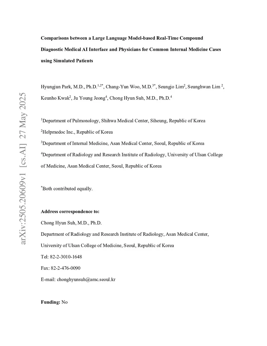 Comparisons between a Large Language Model-based Real-Time Compound Diagnostic Medical AI Interface and Physicians for Common Internal Medicine Cases using Simulated Patients
