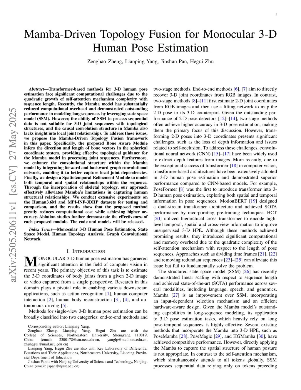 Mamba-Driven Topology Fusion for Monocular 3D Human Pose Estimation
