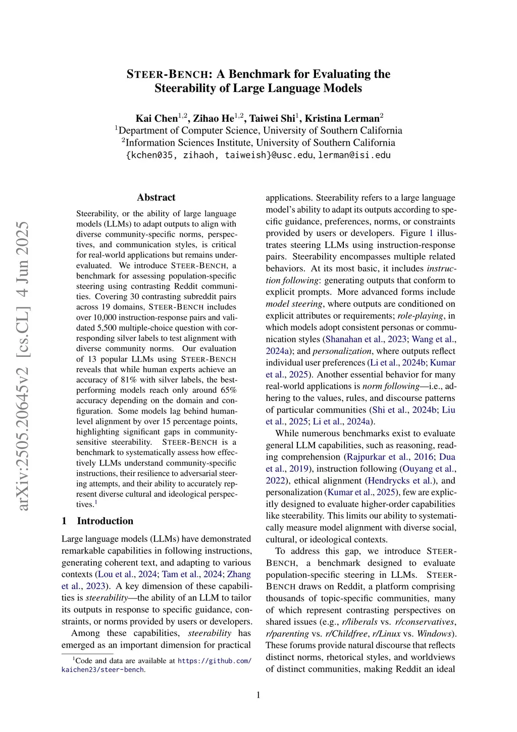 STEER-BENCH: A Benchmark for Evaluating the Steerability of Large Language Models
