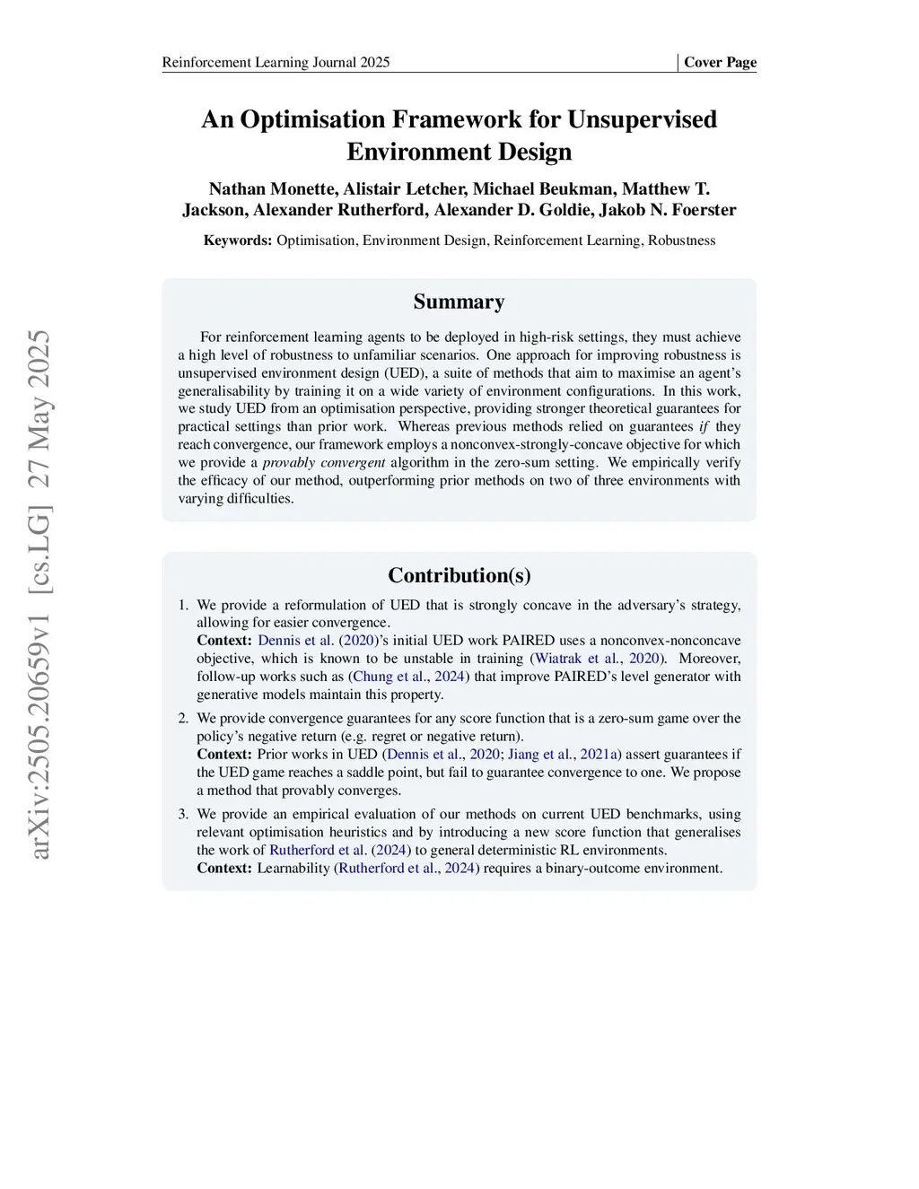 An Optimisation Framework for Unsupervised Environment Design