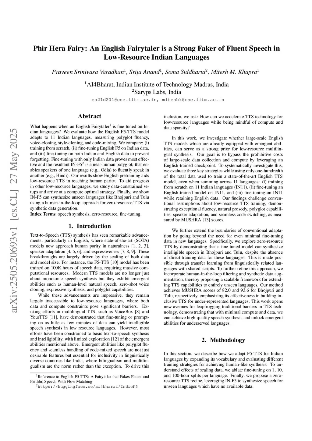 What happens when an English Fairytaler is fine-tuned on Indian languages? We evaluate how the English F5-TTS model adapts to 11 Indian languages, measuring polyglot fluency, voice-cloning, style-cloning, and code-mixing. We compare: (i) training from scratch, (ii) fine-tuning English F5 on Indian data, and (iii) fine-tuning on both Indian and English data to prevent forgetting. Fine-tuning with only Indian data proves most effective and the resultant IN-F5 is a near-human polyglot; that enables speakers of one language (e.g., Odia) to fluently speak in another (e.g., Hindi). Our results show English pretraining aids low-resource TTS in reaching human parity. To aid progress in other low-resource languages, we study data-constrained setups and arrive at a compute optimal strategy. Finally, we show IN-F5 can synthesize unseen languages like Bhojpuri and Tulu using a human-in-the-loop approach for zero-resource TTS via synthetic data generation.