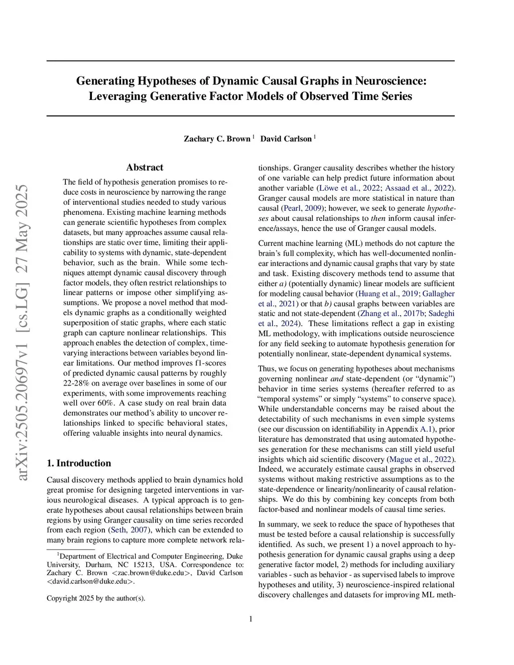 Generating Hypotheses of Dynamic Causal Graphs in Neuroscience: Leveraging Generative Factor Models of Observed Time Series