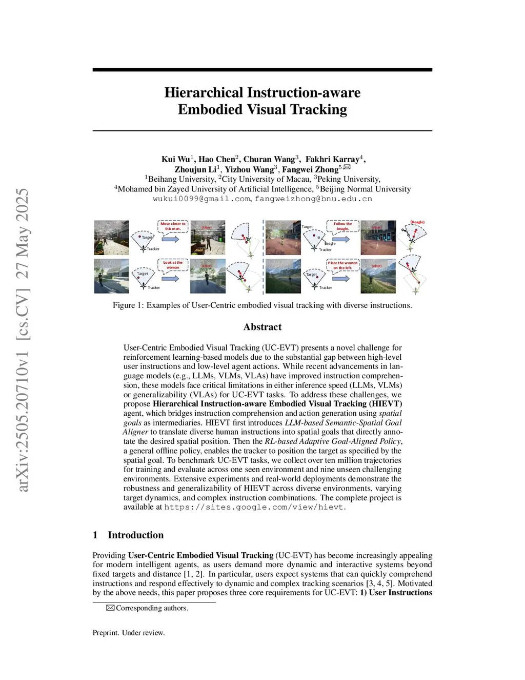 Hierarchical Instruction-aware Embodied Visual Tracking