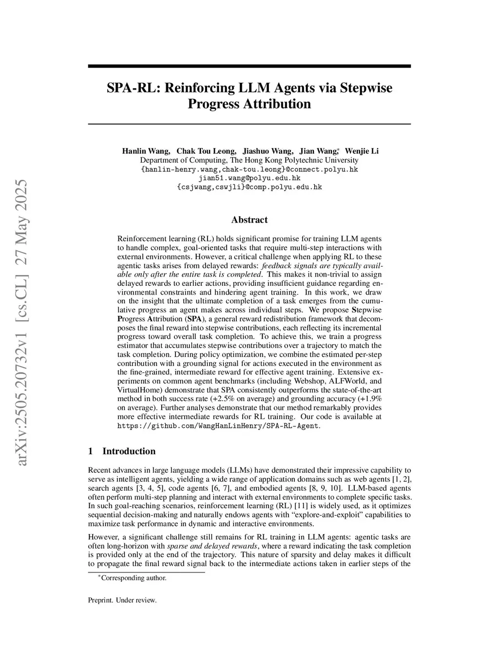 SPA-RL: Reinforcing LLM Agents via Stepwise Progress Attribution