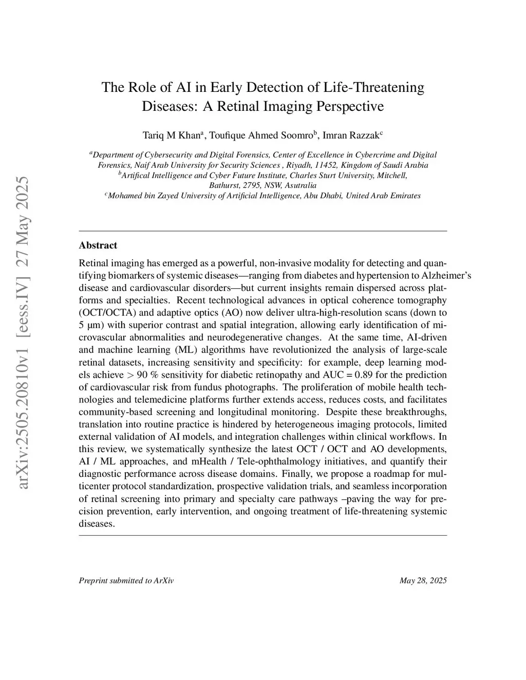The Role of AI in Early Detection of Life-Threatening Diseases: A Retinal Imaging Perspective