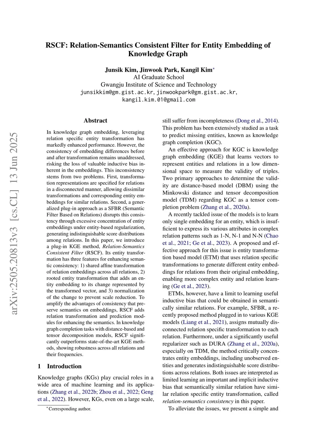 RSCF: Relation-Semantics Consistent Filter for Entity Embedding of Knowledge Graph
