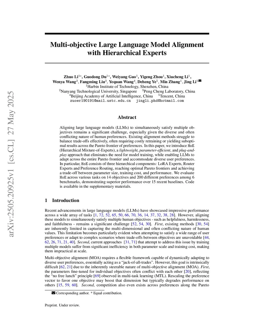 Multi-objective Large Language Model Alignment with Hierarchical Experts
