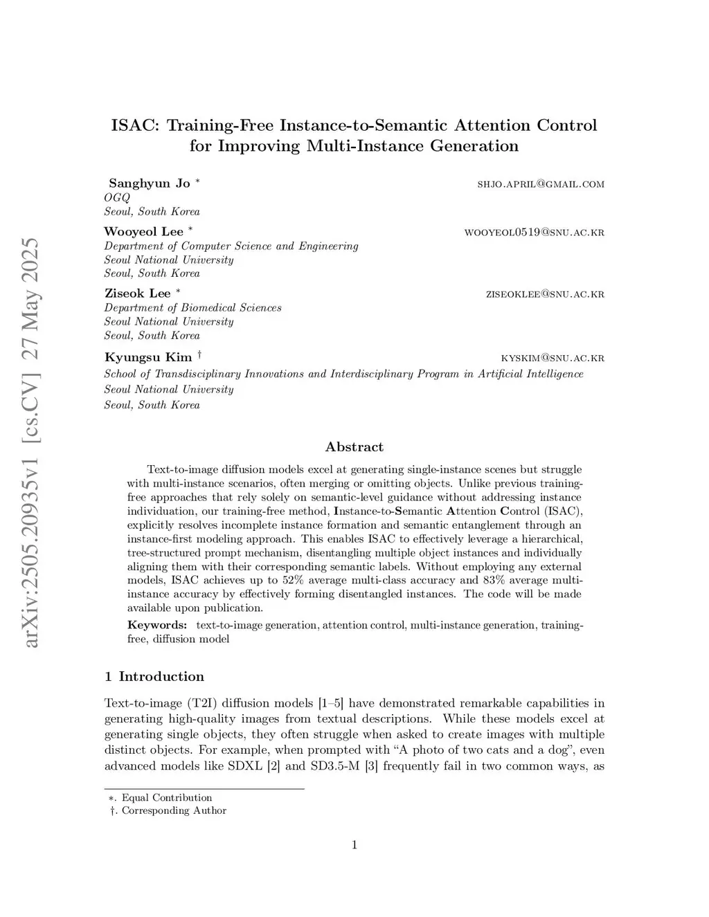 ISAC: Training-Free Instance-to-Semantic Attention Control for Improving Multi-Instance Generation