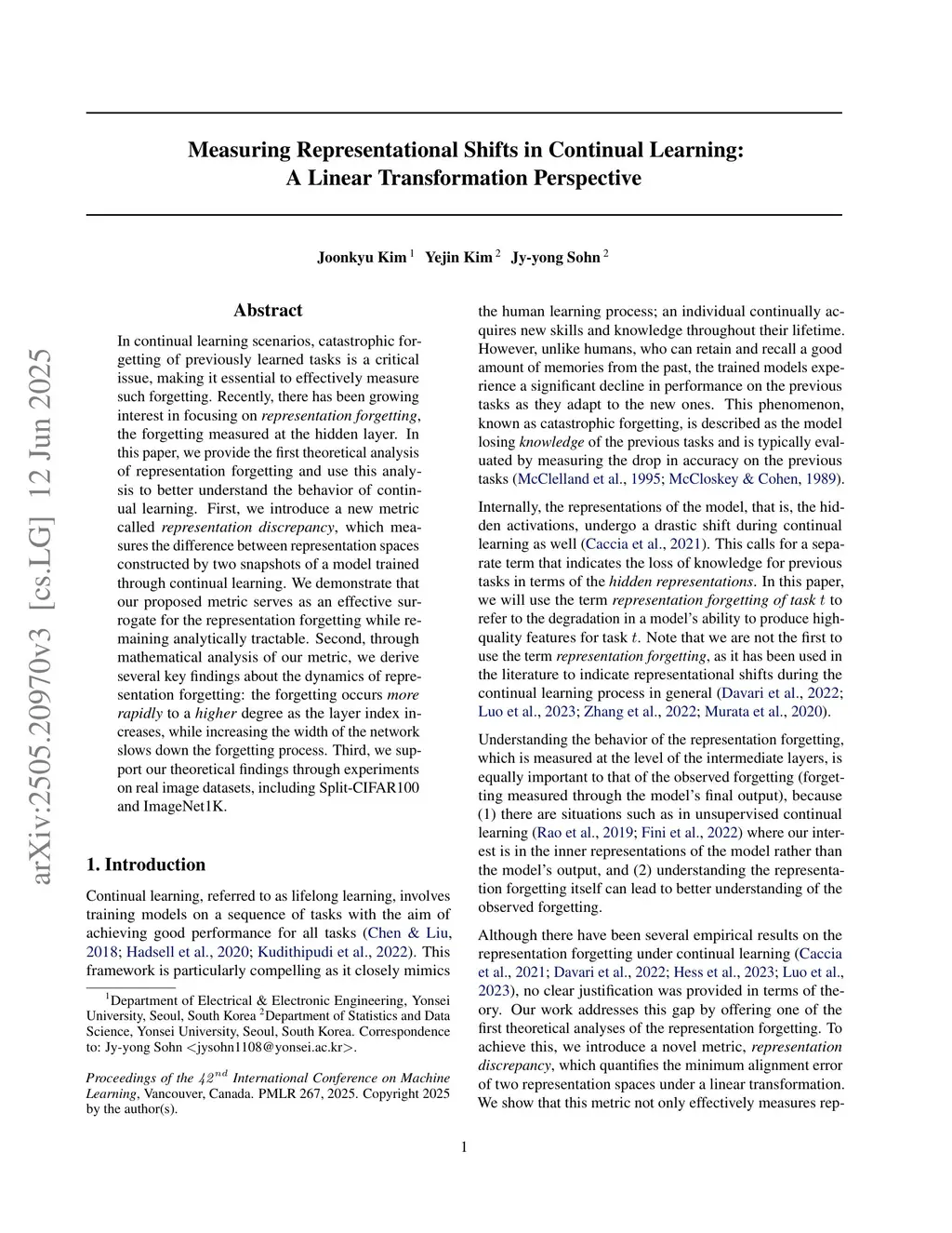 Measuring Representational Shifts in Continual Learning: A Linear Transformation Perspective