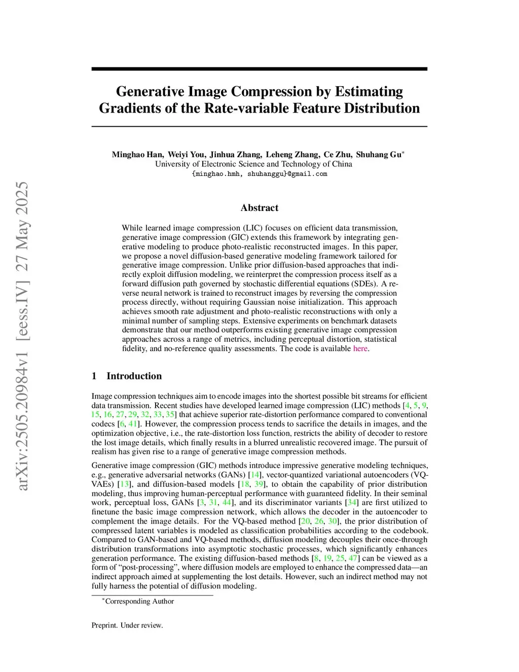 Generative Image Compression by Estimating Gradients of the Rate-variable Feature Distribution