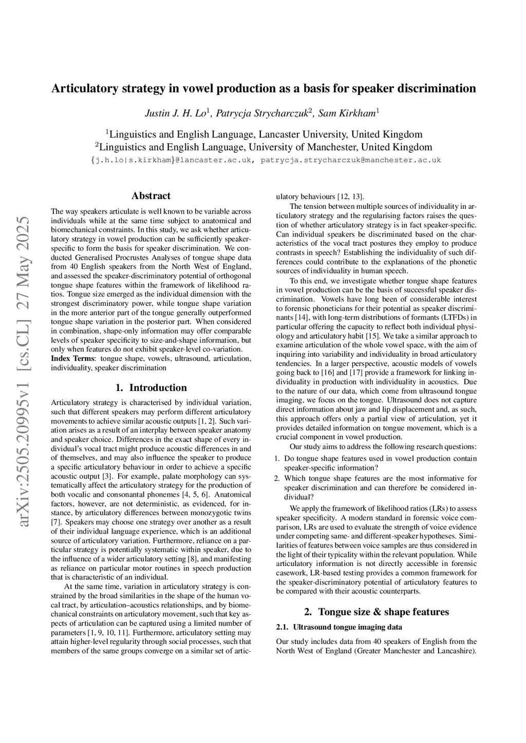 Articulatory strategy in vowel production as a basis for speaker discrimination