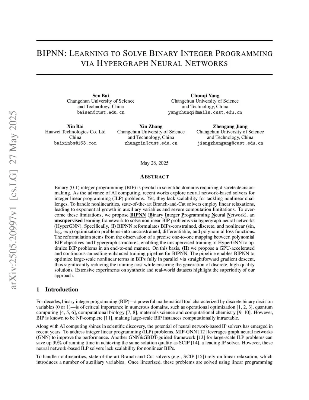 BIPNN: Learning to Solve Binary Integer Programming via Hypergraph Neural Networks