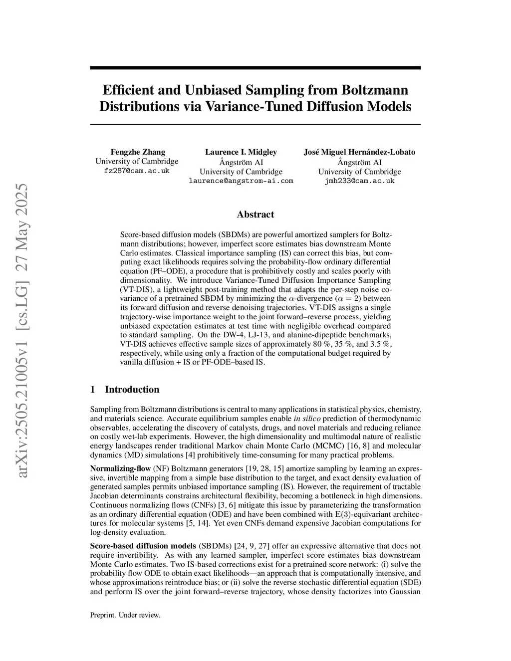 Efficient and Unbiased Sampling from Boltzmann Distributions via Variance-Tuned Diffusion Models