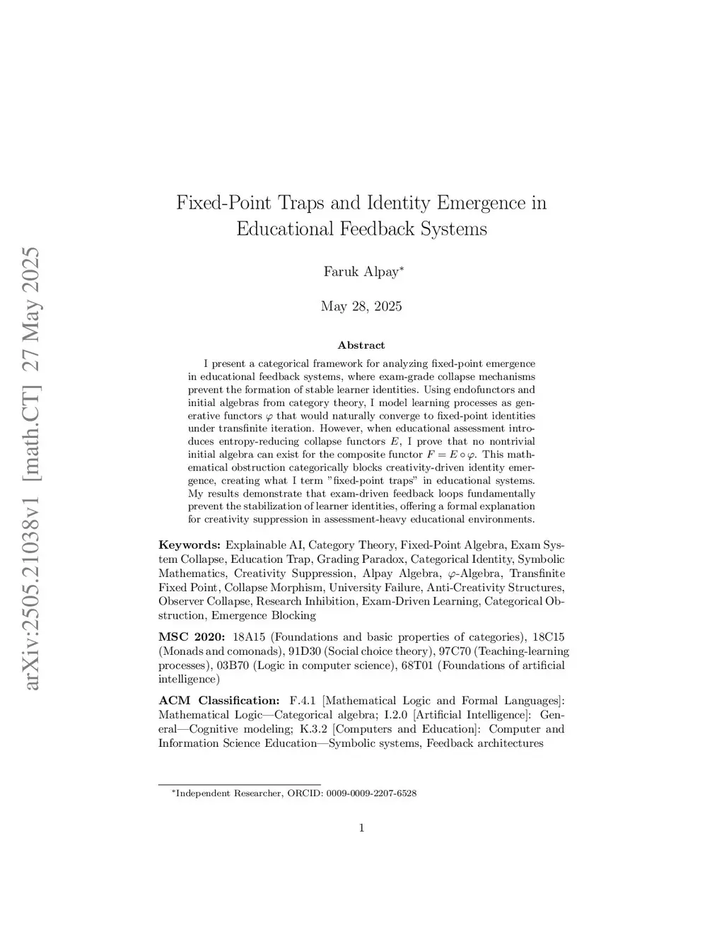 Fixed-Point Traps and Identity Emergence in Educational Feedback Systems