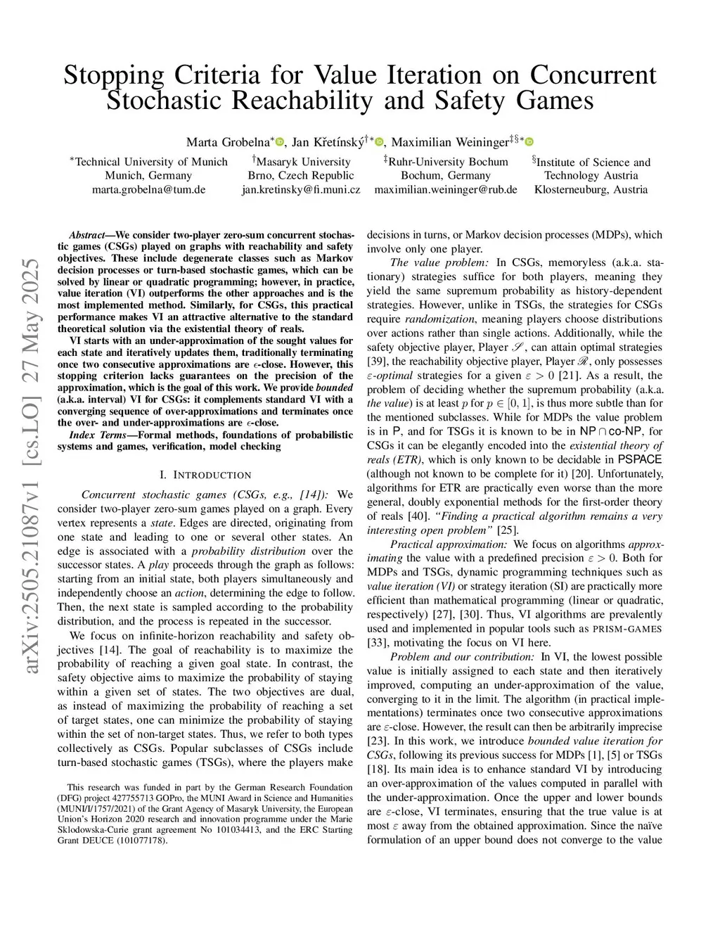 Stopping Criteria for Value Iteration on Concurrent Stochastic Reachability and Safety Games