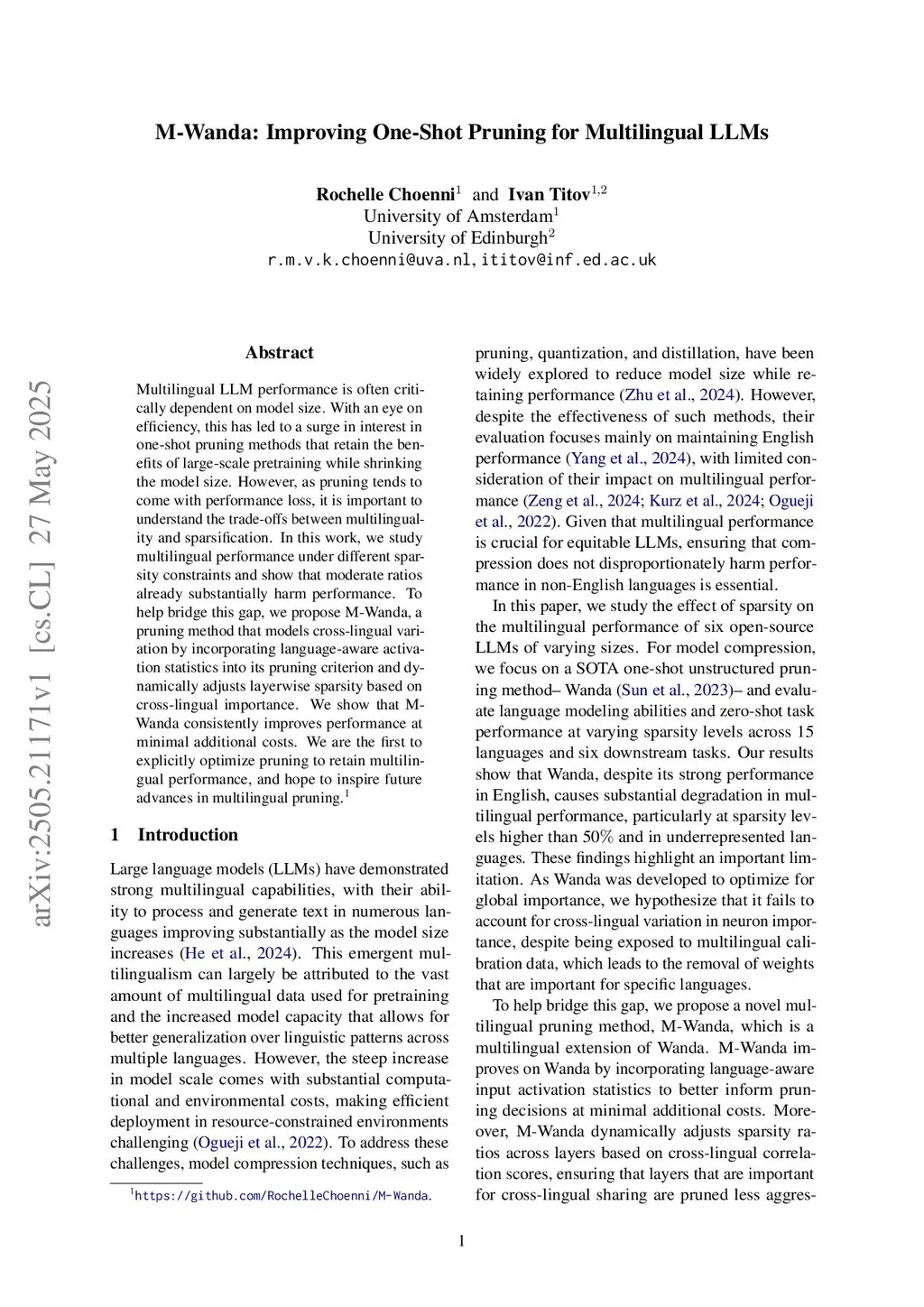 M-Wanda: Improving One-Shot Pruning for Multilingual LLMs