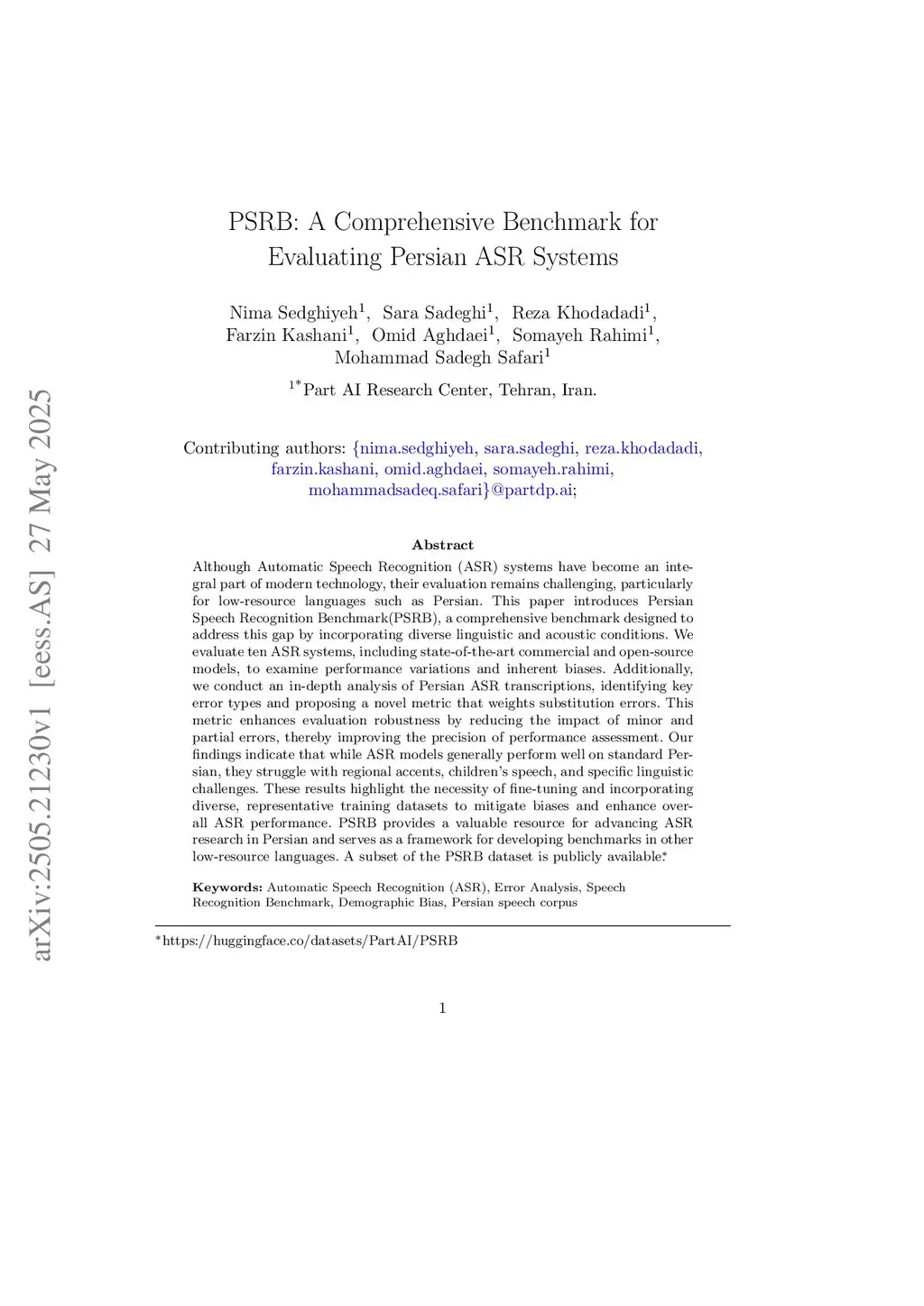 PSRB: A Comprehensive Benchmark for Evaluating Persian ASR Systems