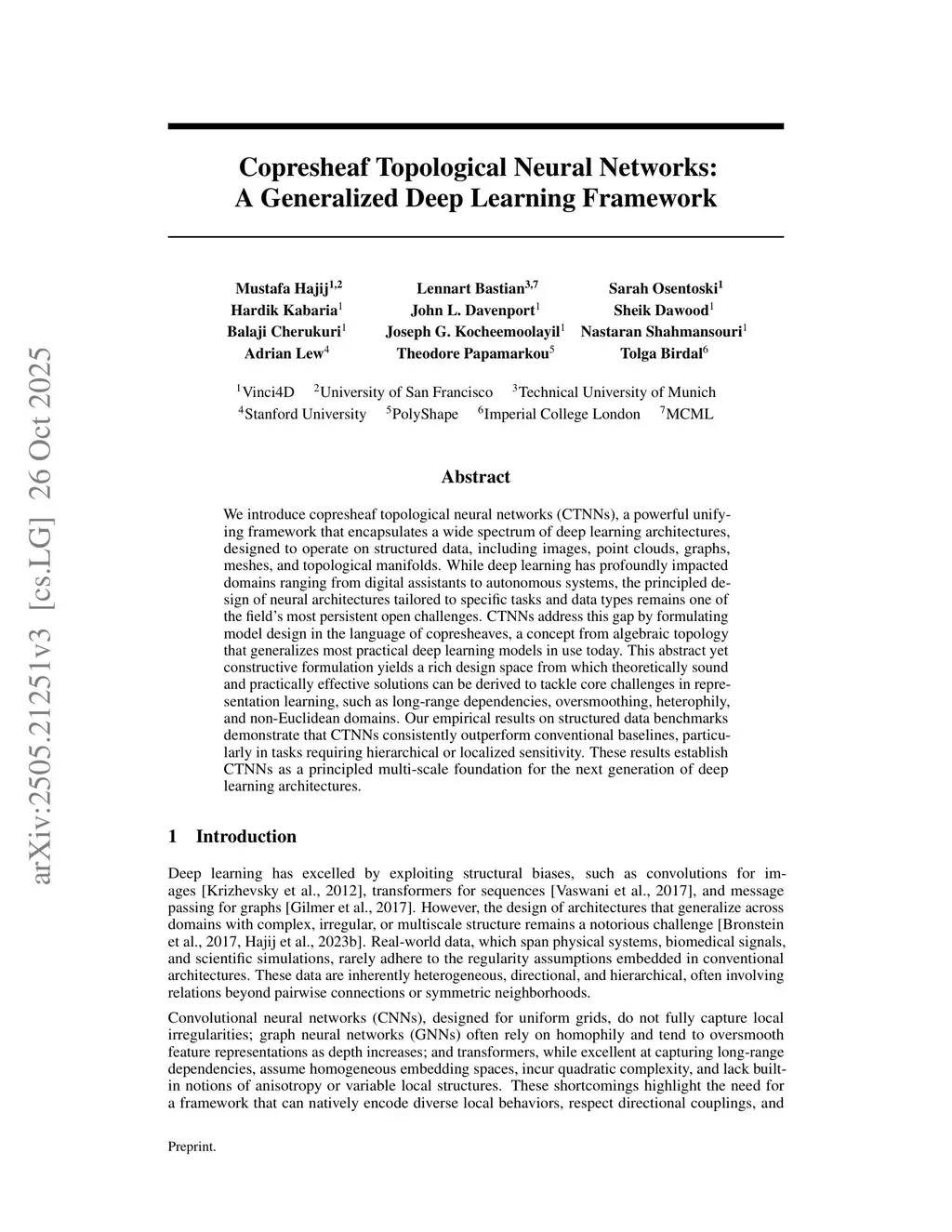 We introduce copresheaf topological neural networks (CTNNs), a powerful unifying framework that encapsulates a wide spectrum of deep learning architectures, designed to operate on structured data, including images, point clouds, graphs, meshes, and topological manifolds. While deep learning has profoundly impacted domains ranging from digital assistants to autonomous systems, the principled design of neural architectures tailored to specific tasks and data types remains one of the field's most persistent open challenges. CTNNs address this gap by formulating model design in the language of copresheaves, a concept from algebraic topology that generalizes most practical deep learning models in use today. This abstract yet constructive formulation yields a rich design space from which theoretically sound and practically effective solutions can be derived to tackle core challenges in representation learning, such as long-range dependencies, oversmoothing, heterophily, and non-Euclidean domains. Our empirical results on structured data benchmarks demonstrate that CTNNs consistently outperform conventional baselines, particularly in tasks requiring hierarchical or localized sensitivity. These results establish CTNNs as a principled multi-scale foundation for the next generation of deep learning architectures.