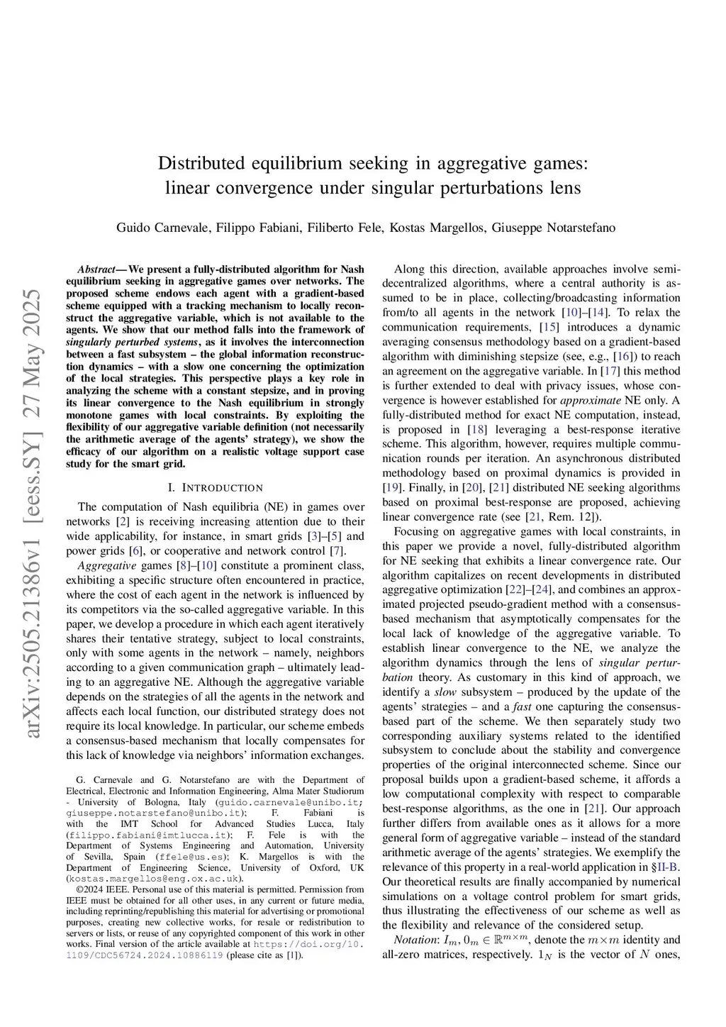 We present a fully-distributed algorithm for Nash equilibrium seeking in aggregative games over networks. The proposed scheme endows each agent with a gradient-based scheme equipped with a tracking mechanism to locally reconstruct the aggregative variable, which is not available to the agents. We show that our method falls into the framework of singularly perturbed systems, as it involves the interconnection between a fast subsystem - the global information reconstruction dynamics - with a slow one concerning the optimization of the local strategies. This perspective plays a key role in analyzing the scheme with a constant stepsize, and in proving its linear convergence to the Nash equilibrium in strongly monotone games with local constraints. By exploiting the flexibility of our aggregative variable definition (not necessarily the arithmetic average of the agents' strategy), we show the efficacy of our algorithm on a realistic voltage support case study for the smart grid.