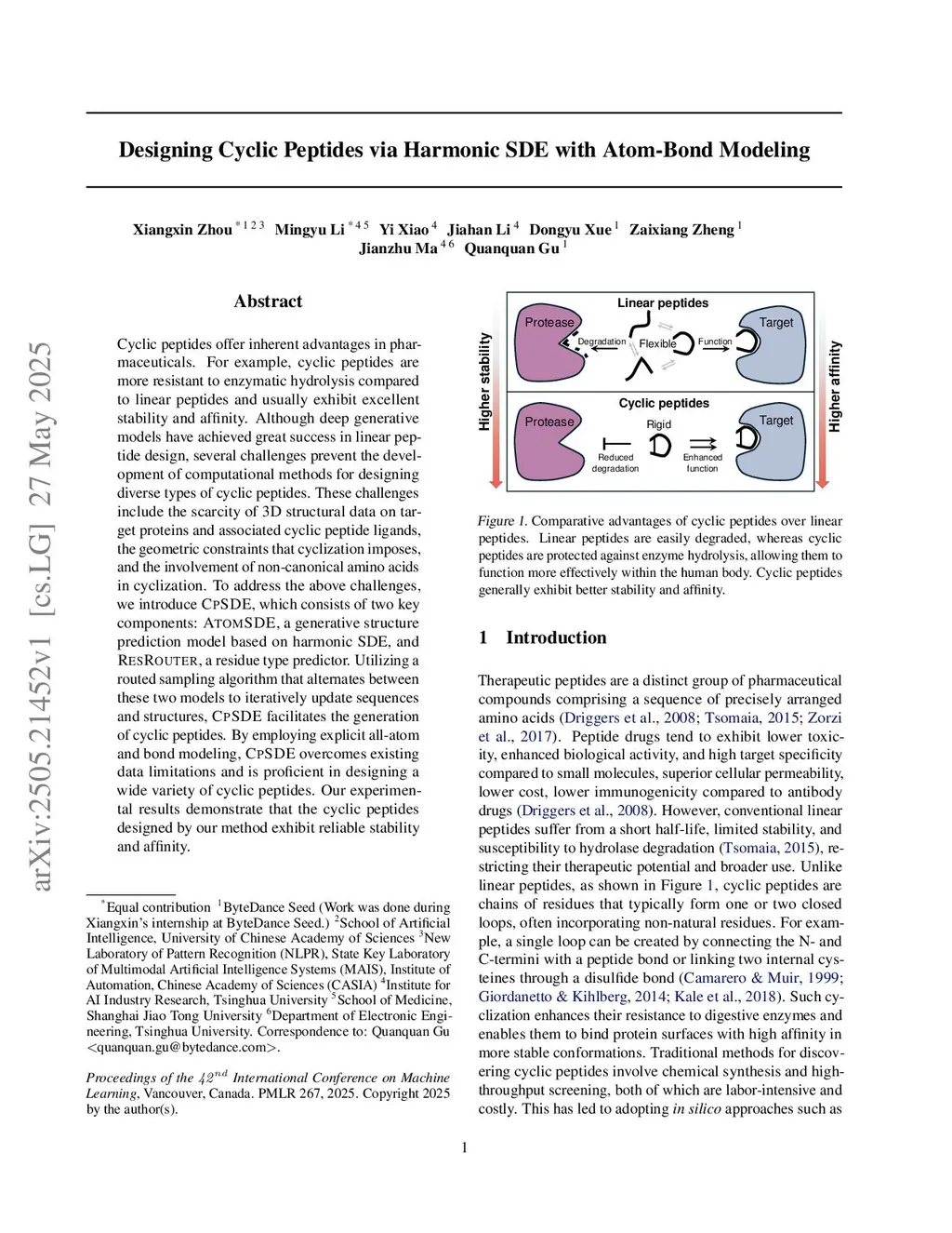 Designing Cyclic Peptides via Harmonic SDE with Atom-Bond Modeling