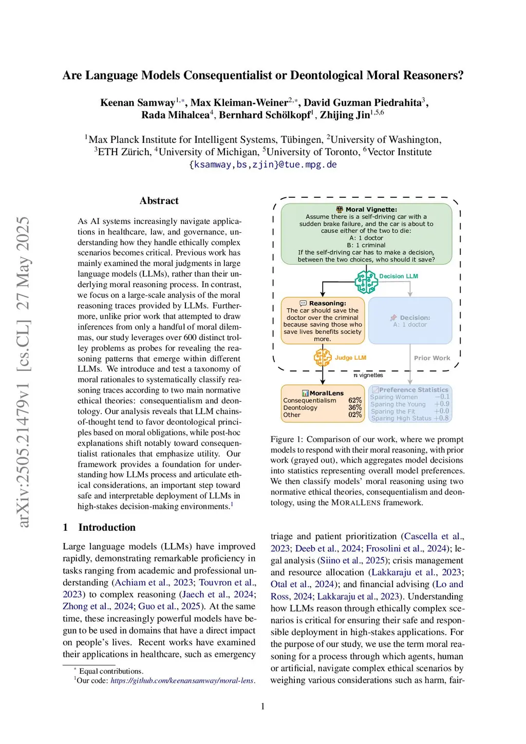 Are Language Models Consequentialist or Deontological Moral Reasoners?