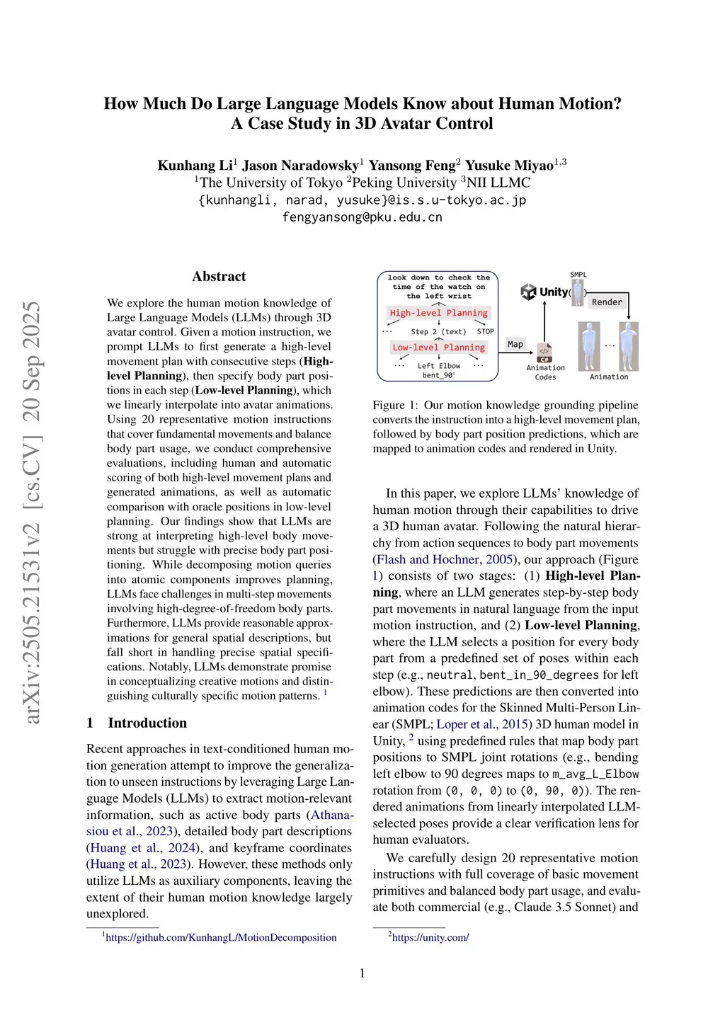 How Much Do Large Language Models Know about Human Motion? A Case Study in 3D Avatar Control
