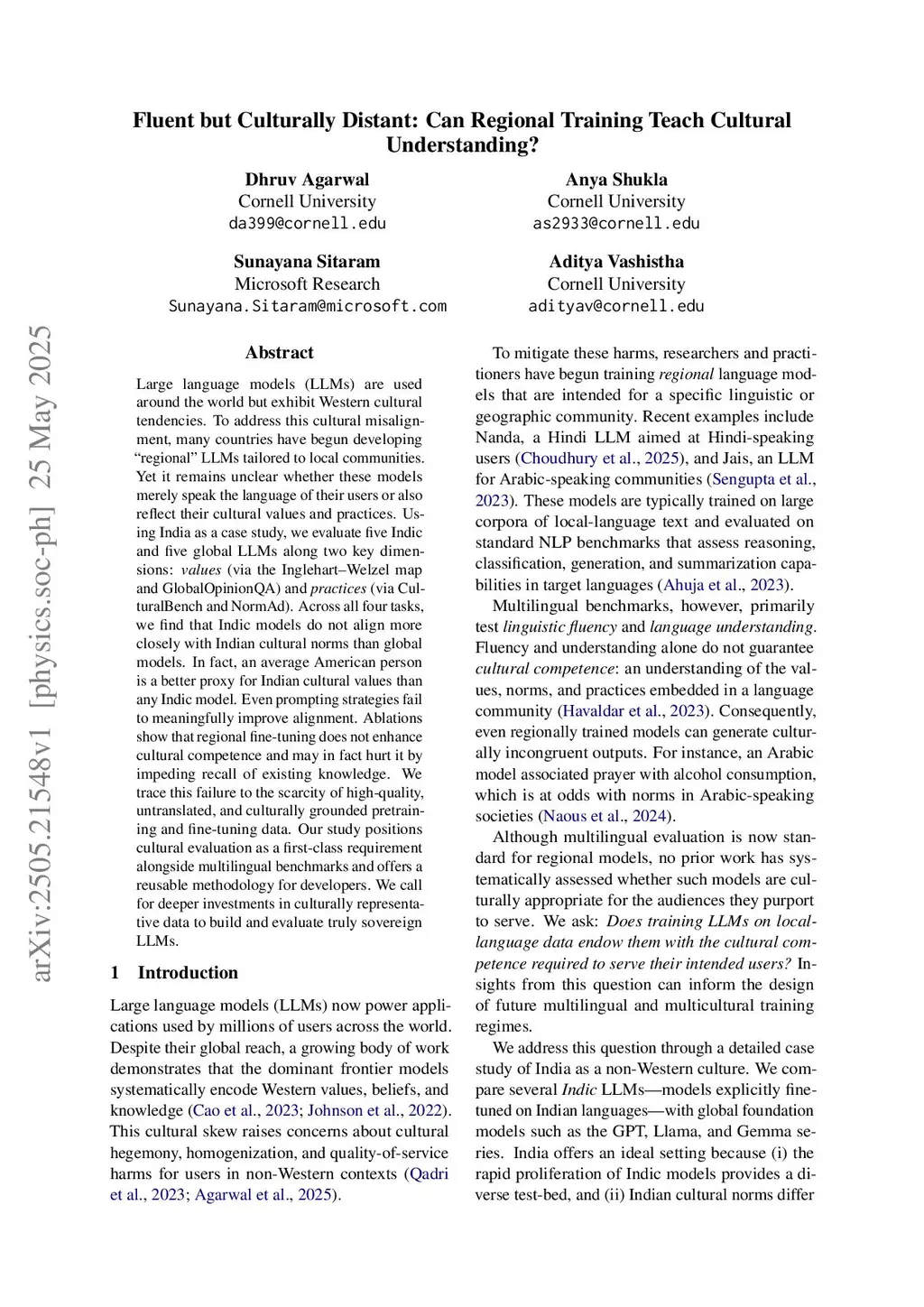 Large language models (LLMs) are used worldwide, yet exhibit Western cultural tendencies. Many countries are now building ``regional'' LLMs, but it remains unclear whether they reflect local values and practices or merely speak local languages. Using India as a case study, we evaluate six Indic and six global LLMs on two dimensions -- values and practices -- grounded in nationally representative surveys and community-sourced QA datasets. Across tasks, Indic models do not align better with Indian norms than global models; in fact, a U.S. respondent is a closer proxy for Indian values than any Indic model. Prompting and regional fine-tuning fail to recover alignment and can even degrade existing knowledge. We attribute this to scarce culturally grounded data, especially for pretraining. We position cultural evaluation as a first-class requirement alongside multilingual benchmarks and offer a reusable, community-grounded methodology. We call for native, community-authored corpora and thick x wide evaluations to build truly sovereign LLMs.