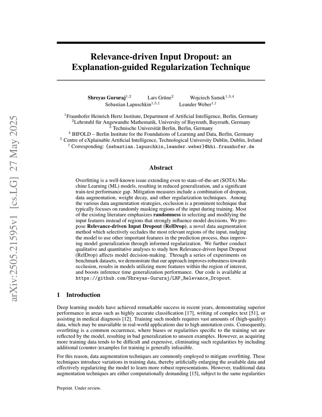Relevance-driven Input Dropout: an Explanation-guided Regularization Technique