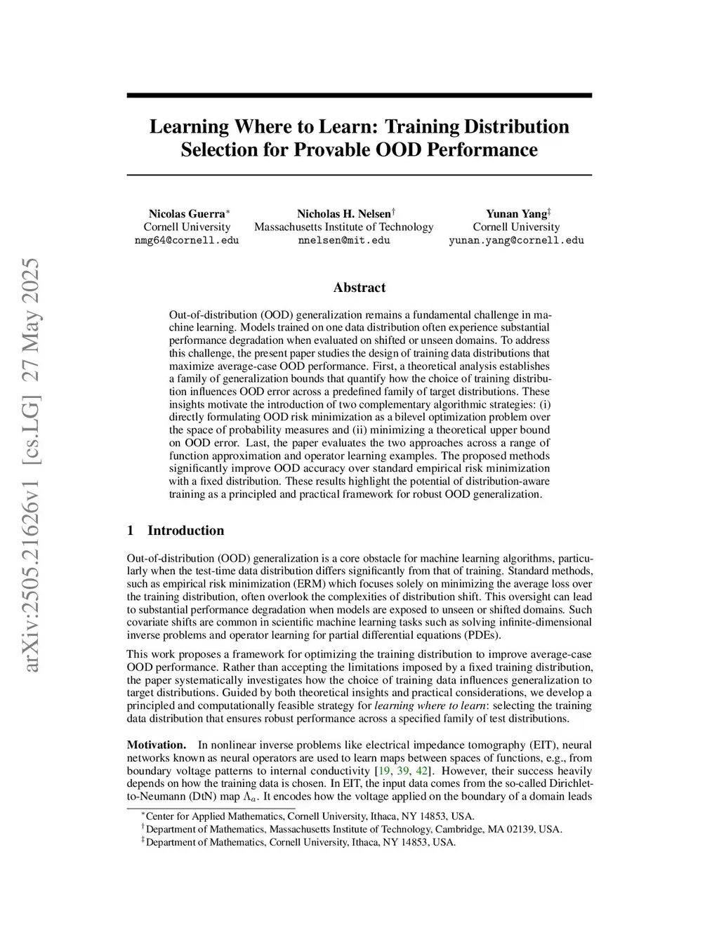 In scientific machine learning, models are routinely deployed with parameter values or boundary conditions far from those used in training. This paper studies the learning-where-to-learn problem of designing a training data distribution that minimizes average prediction error across a family of deployment regimes. A theoretical analysis shows how the training distribution shapes deployment accuracy. This motivates two adaptive algorithms based on bilevel or alternating optimization in the space of probability measures. Discretized implementations using parametric distribution classes or nonparametric particle-based gradient flows deliver optimized training distributions that outperform nonadaptive designs. Once trained, the resulting models exhibit improved sample complexity and robustness to distribution shift. This framework unlocks the potential of principled data acquisition for learning functions and solution operators of partial differential equations.