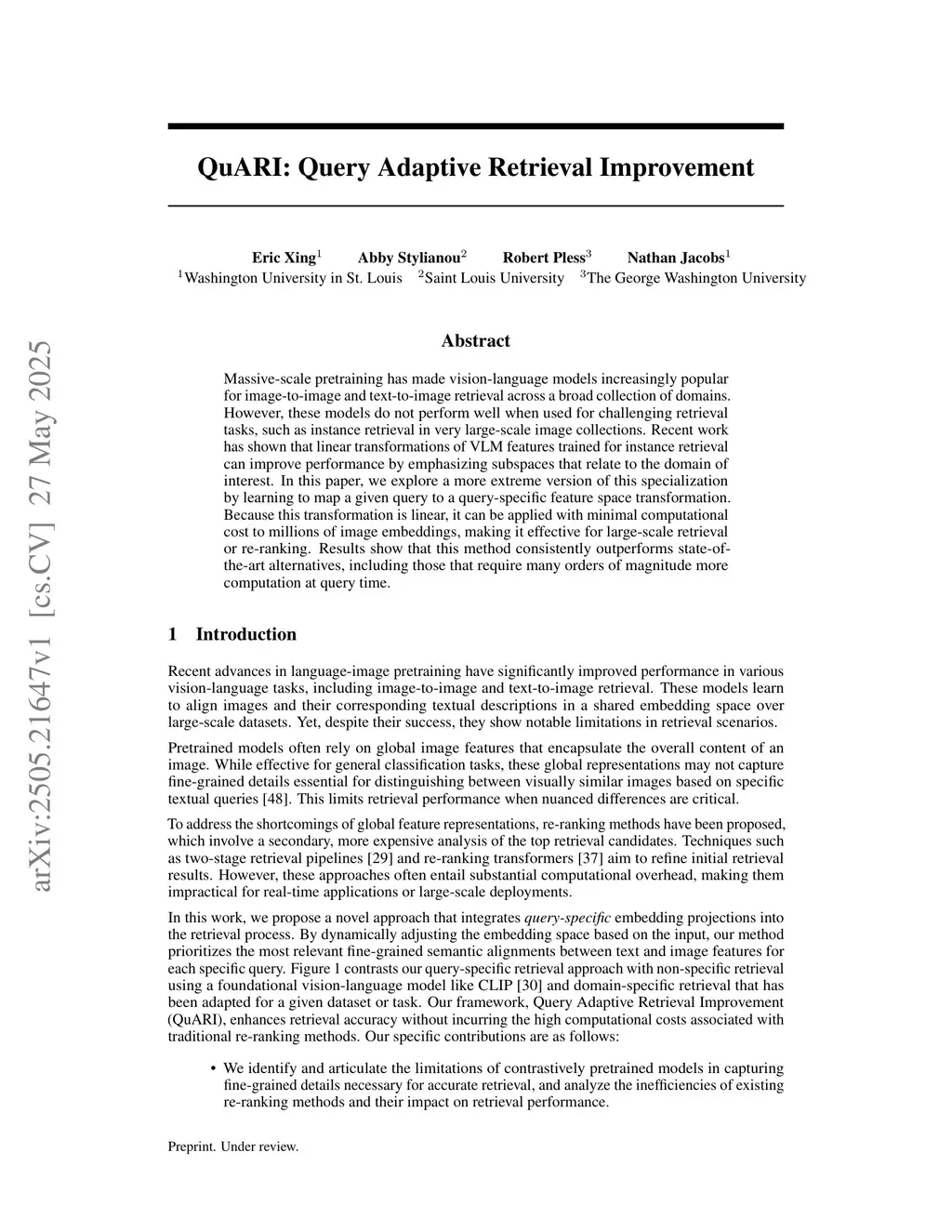 Massive-scale pretraining has made vision-language models increasingly popular for image-to-image and text-to-image retrieval across a broad collection of domains. However, these models do not perform well when used for challenging retrieval tasks, such as instance retrieval in very large-scale image collections. Recent work has shown that linear transformations of VLM features trained for instance retrieval can improve performance by emphasizing subspaces that relate to the domain of interest. In this paper, we explore a more extreme version of this specialization by learning to map a given query to a query-specific feature space transformation. Because this transformation is linear, it can be applied with minimal computational cost to millions of image embeddings, making it effective for large-scale retrieval or re-ranking. Results show that this method consistently outperforms state-of-the-art alternatives, including those that require many orders of magnitude more computation at query time.