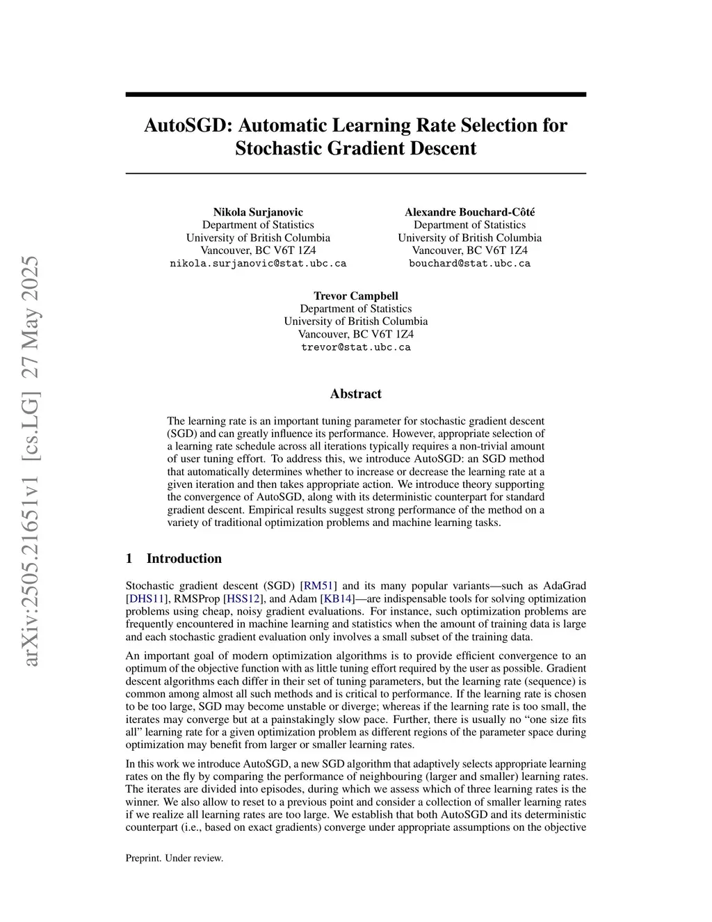 AutoSGD: Automatic Learning Rate Selection for Stochastic Gradient Descent