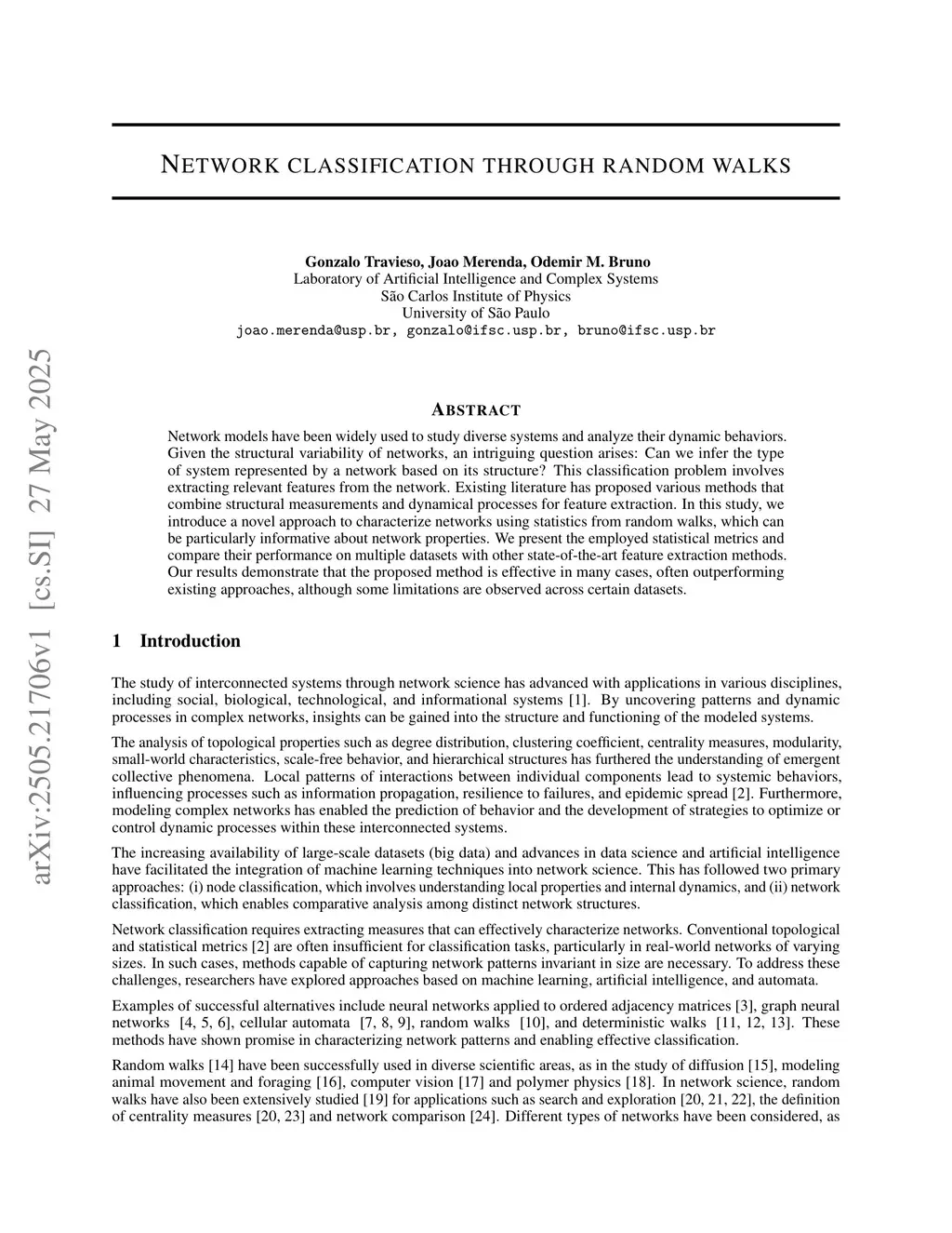 Network classification through random walks