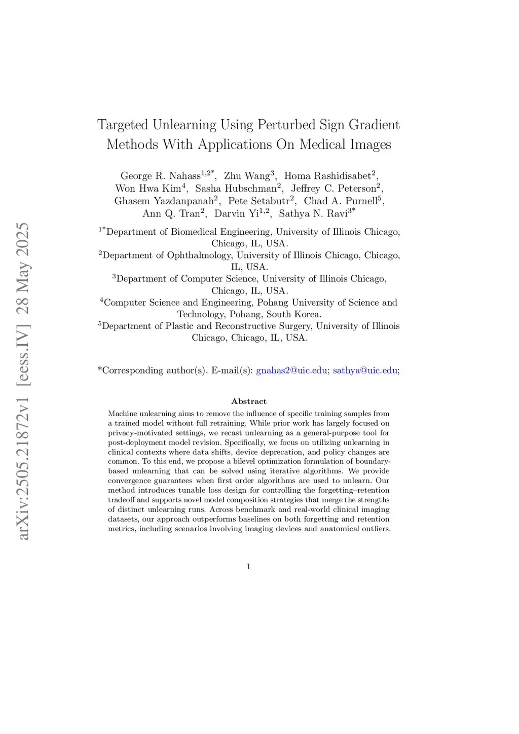 Targeted Unlearning Using Perturbed Sign Gradient Methods With Applications On Medical Images
