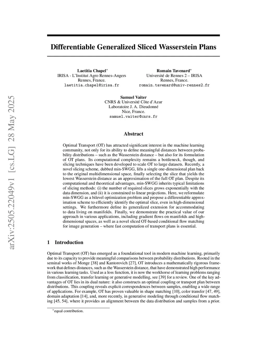 Optimal Transport (OT) has attracted significant interest in the machine learning community, not only for its ability to define meaningful distances between probability distributions -- such as the Wasserstein distance -- but also for its formulation of OT plans. Its computational complexity remains a bottleneck, though, and slicing techniques have been developed to scale OT to large datasets. Recently, a novel slicing scheme, dubbed min-SWGG, lifts a single one-dimensional plan back to the original multidimensional space, finally selecting the slice that yields the lowest Wasserstein distance as an approximation of the full OT plan. Despite its computational and theoretical advantages, min-SWGG inherits typical limitations of slicing methods: (i) the number of required slices grows exponentially with the data dimension, and (ii) it is constrained to linear projections. Here, we reformulate min-SWGG as a bilevel optimization problem and propose a differentiable approximation scheme to efficiently identify the optimal slice, even in high-dimensional settings. We furthermore define its generalized extension for accommodating to data living on manifolds. Finally, we demonstrate the practical value of our approach in various applications, including gradient flows on manifolds and high-dimensional spaces, as well as a novel sliced OT-based conditional flow matching for image generation -- where fast computation of transport plans is essential.