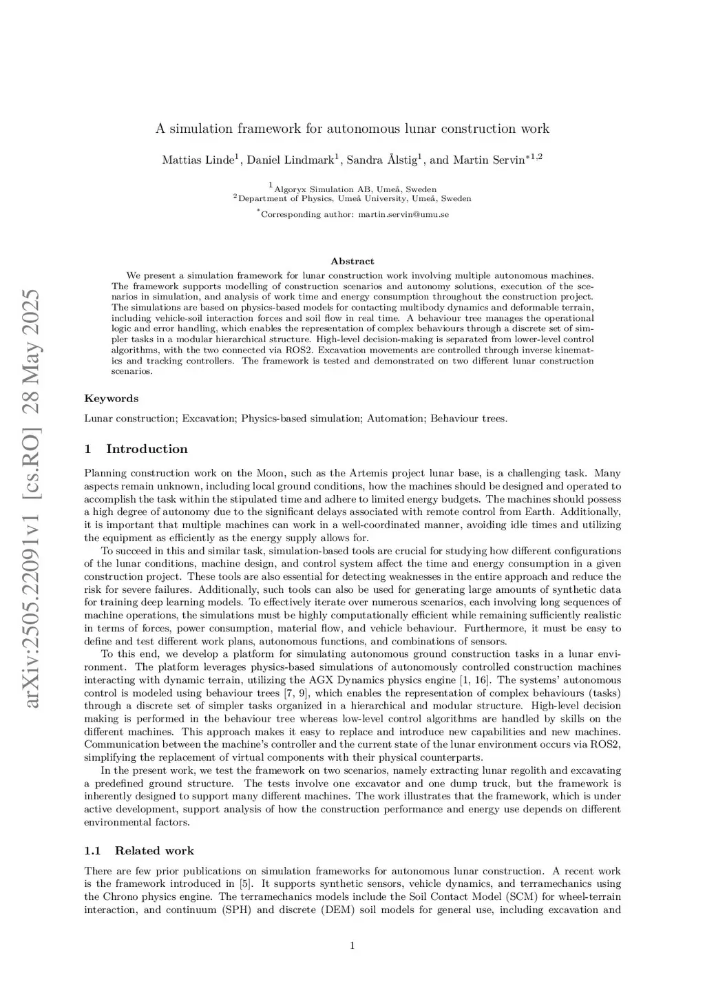 A simulation framework for autonomous lunar construction work