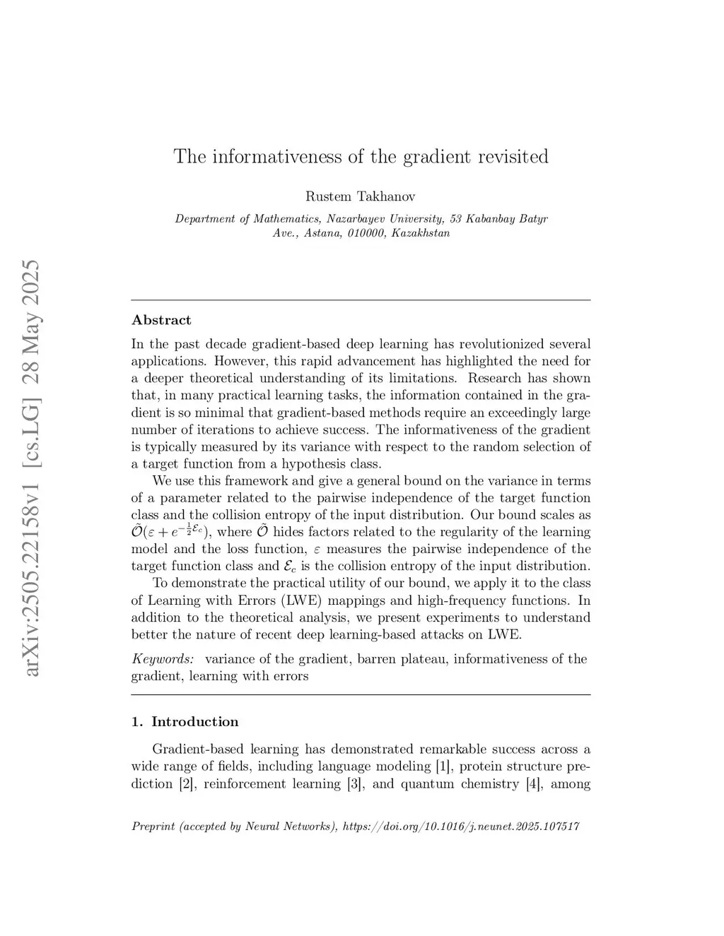 In the past decade gradient-based deep learning has revolutionized several applications. However, this rapid advancement has highlighted the need for a deeper theoretical understanding of its limitations. Research has shown that, in many practical learning tasks, the information contained in the gradient is so minimal that gradient-based methods require an exceedingly large number of iterations to achieve success. The informativeness of the gradient is typically measured by its variance with respect to the random selection of a target function from a hypothesis class.We use this framework and give a general bound on the variance in terms of a parameter related to the pairwise independence of the target function class and the collision entropy of the input distribution. Our bound scales as $ \tilde{\mathcal{O}}(\varepsilon+e^{-\frac{1}{2}\mathcal{E}_c}) $, where $ \tilde{\mathcal{O}} $ hides factors related to the regularity of the learning model and the loss function, $ \varepsilon $ measures the pairwise independence of the target function class and is the collision entropy of the input distribution.To demonstrate the practical utility of our bound, we apply it to the class of Learning with Errors (LWE) mappings and high-frequency functions. In addition to the theoretical analysis, we present experiments to understand better the nature of recent deep learning-based attacks on LWE.